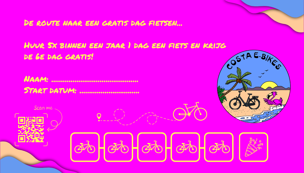 Huur 5x binnen een jaar 1 dag een fiets en krijg de 6e dag gratis!